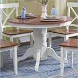 The Home Styles Dining Table is constructed of solid hardwood in a multi-step off white and cottage oak finish. It features a round shaped wood top and a pedestal base. Suitable for four, the transitionally styled Home Styles Dining Table is an ideal central fixture in your dining area or kitchen. Features: Dining Table constructed of solid hardwood Off White and Cottage Oak finish Round shape Wood top Seats 4 Pedestal base Wood baseTransitional style Casual dining Ready to assemble Specificati